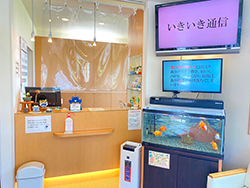 大きなモニターで院内のお知らせを発信しています。
